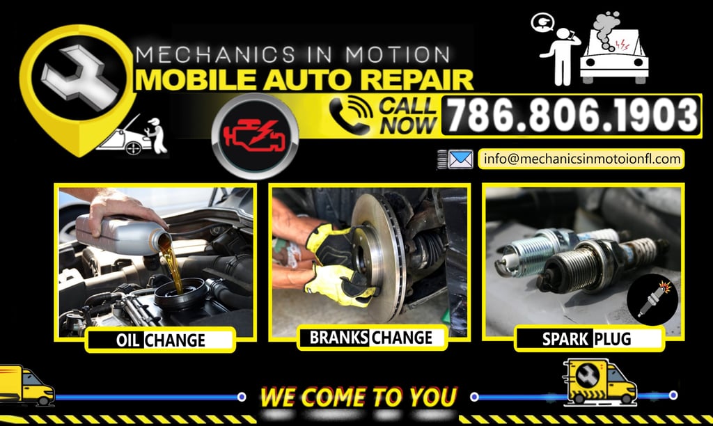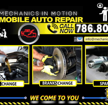 At Mechanics in Motion LLC., we bring expert car care right to your doorstep, blending speed and reliability with a bold yellow, black, and white style.